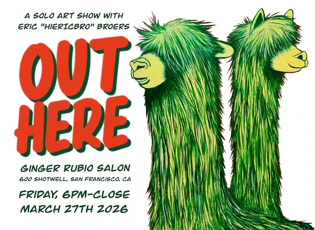 Eric is an international muralist, painter, and designer based in San Francisco, with a studio at Bridge Studio. Growing up in Chicago, he was inspired by silk-screened concert posters, kick- tail skateboards, and old sugary cereal boxes. His work channels that energy through punchy colors, dynamic animal portraits, and playful wordplay.